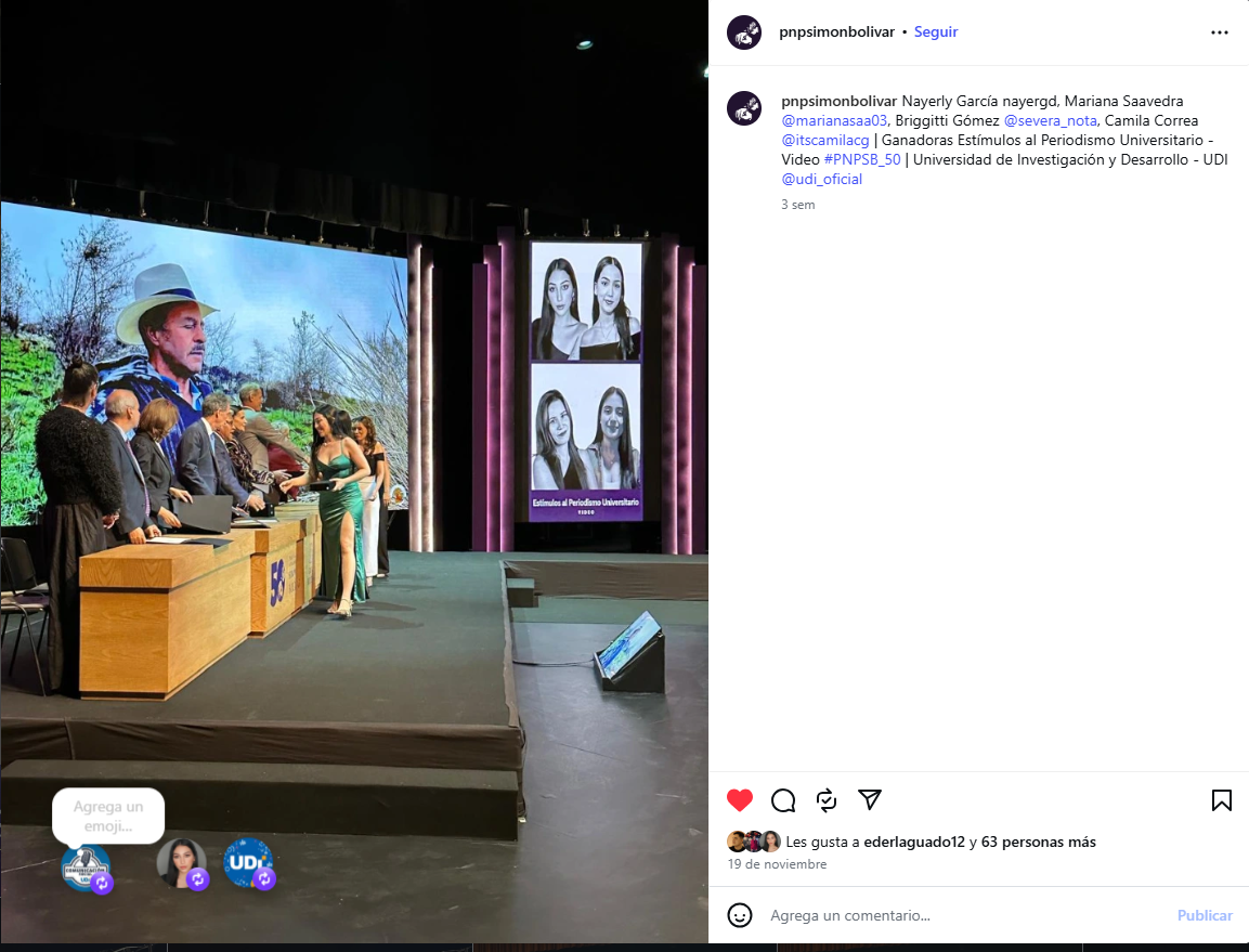 Fotografía: imagen tomada de la cuenta oficial de Instagram del Premio Nacional de Periodismo Simón Bolívar @pnpsimonbolivar